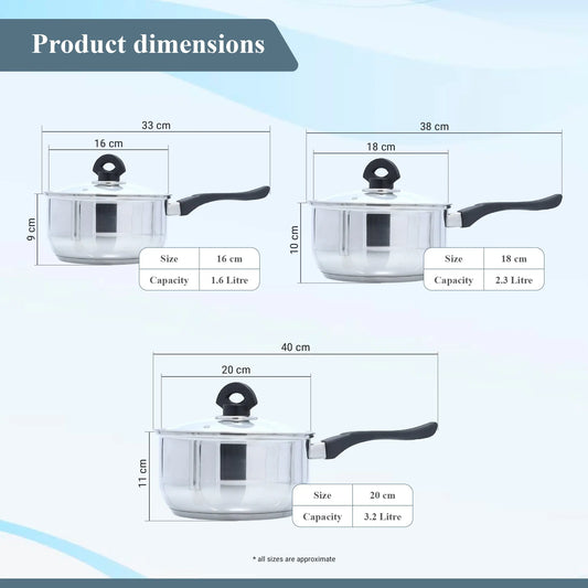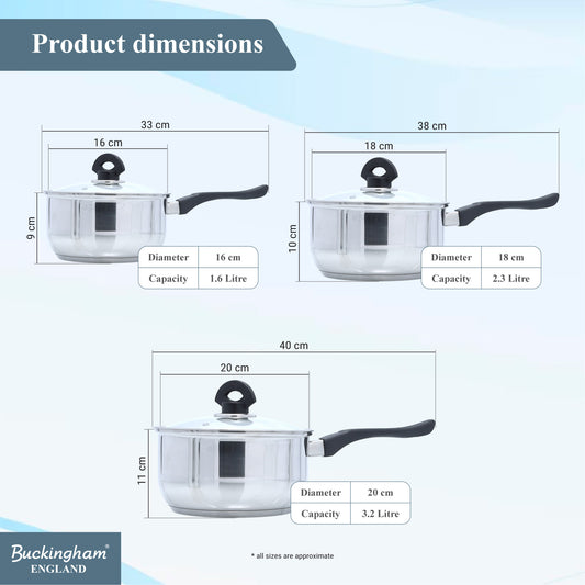 Buckingham 3 Piece Induction Stainless Steel Cookware Saucepan Set