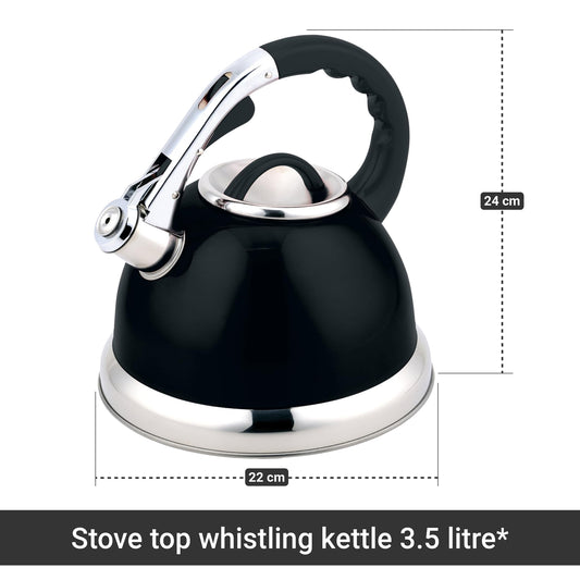 Buckingham Stainless Steel Whistling Kettle Metallic Black Finish 3.5 Litre