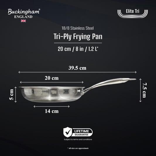 Buckingham Elite-Tri 18/8 Stainless Steel Frying Pan Uncoated