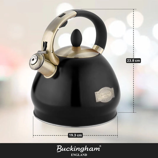Buckingham Stainless Steel Whistling Kettle Metallic Black Finish 3.5 Litre
