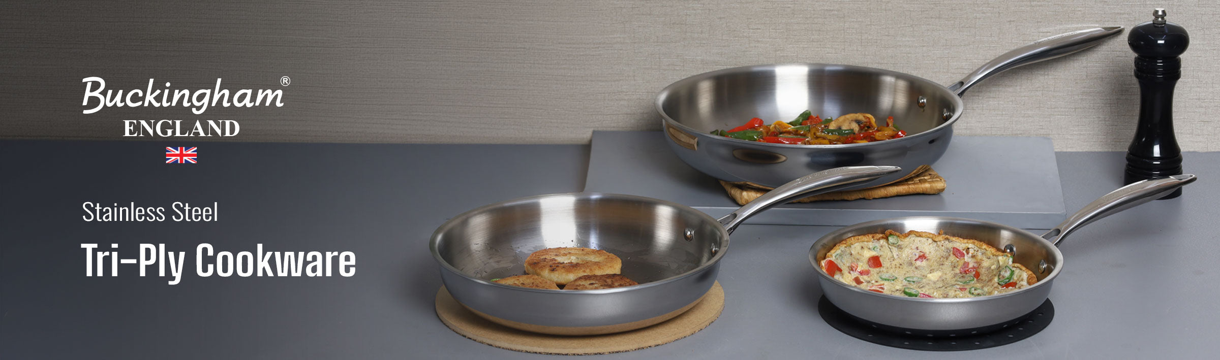 Buckingham Elite-Tri 18/8 Stainless Steel Frying Pan set of 2, Uncoated