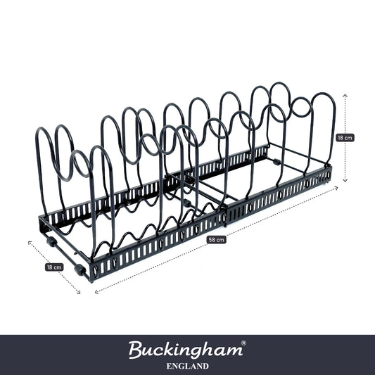 Buckingham Pot Lid Organizer Rack Adjustable 8-Divider Storage Black Metal