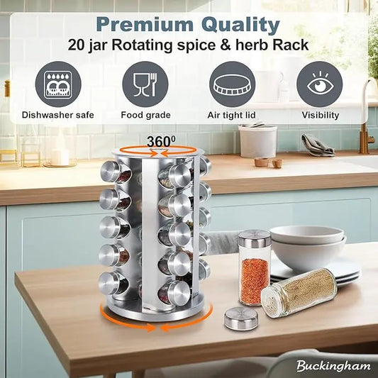 Buckingham Stainless Steel Rotating Spice Rack (20 Jars)