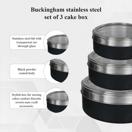 Buckingham Set of 3 Cake Boxes 20 , 22.5 , 25 cm Black