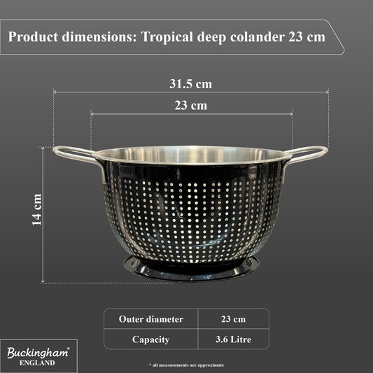 Buckingham Stainless Steel Tropical Deep Colander Black