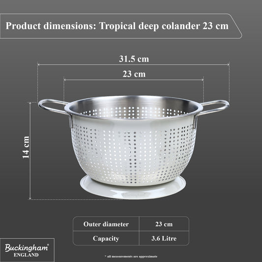 Buckingham Stainless Steel Tropical Deep Colander Ivory Grey