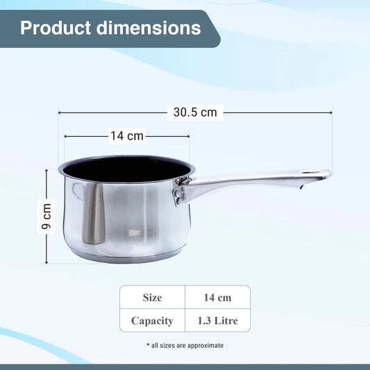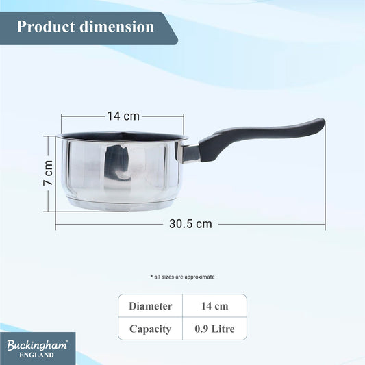 Buckingham Stainless Steel Milk Pan with Bakelite Handle 14 cm 0.9 Litre