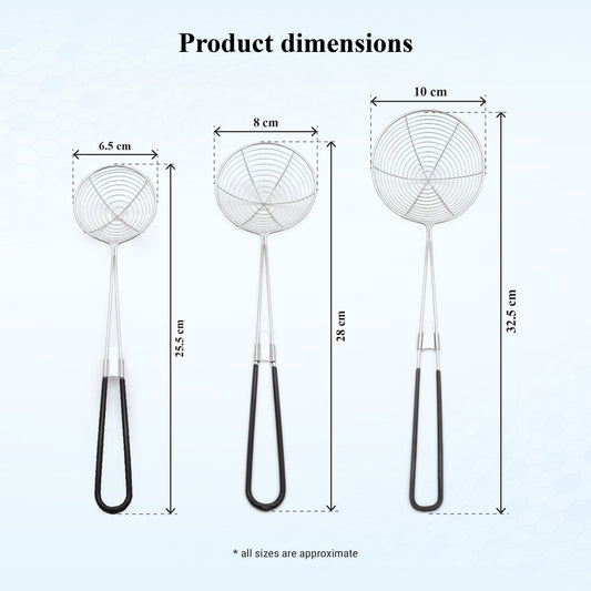 Buckingham Stainless Steel Set of 3 Scooping Peas Ladle Skimmer with Silicone Grip