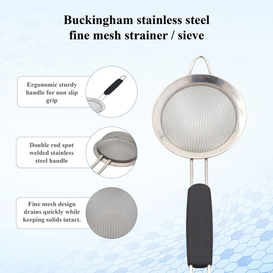 Buckingham Stainless Steel Fine Mesh Sieve with Easy Grip Handle