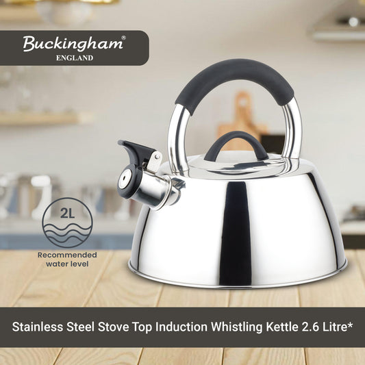 Buckingham Stainless Steel Stovetop Whistling Kettle with Soft Touch Silicon Handle 2 Litre