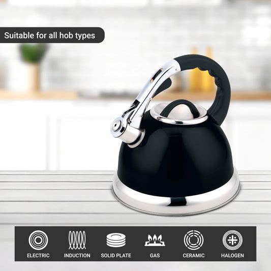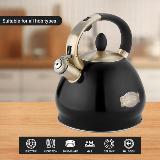 Buckingham Stainless Steel Whistling Kettle Metallic Black Finish 3.5 Litre