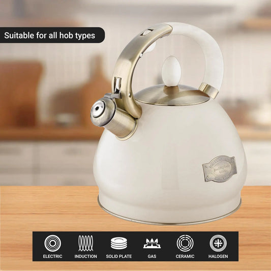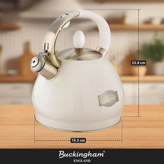 Buckingham Stainless Steel Whistling Tea Kettle Cream Finish 3.5 Litre