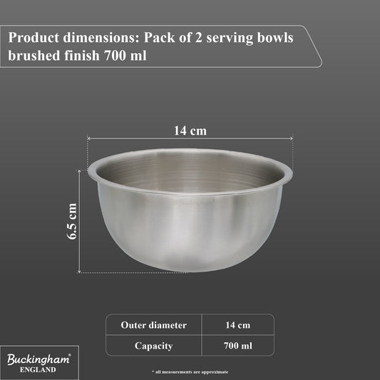 Buckingham Stainless Steel Pack of 2 Deep Salad Serving Bowl for Baking 700 ml