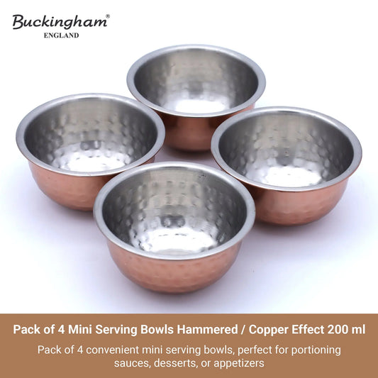 Buckingham Set of 4 Mini Hammered Copper Serving Bowls – 10 cm