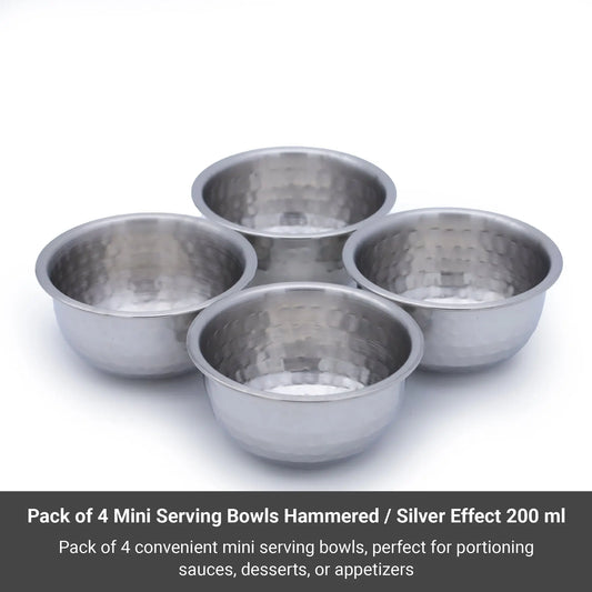 Buckingham Stainless Steel Pack of 4 Mini Serving Bowls Hammered Effect 0.2 L 10 cm