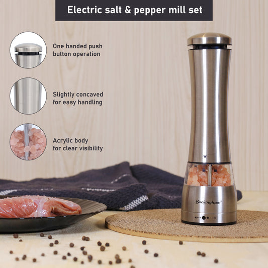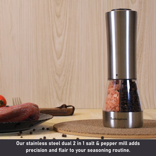 Buckingham Stainless Steel Electric Salt and Pepper Mill Dual 2 in 1 Battery Operated