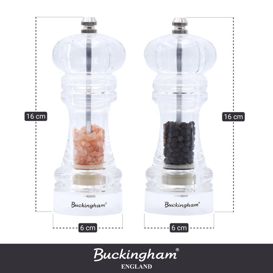 Buckingham Salt and Pepper Seasoning Mill Set Classic Acrylic Design