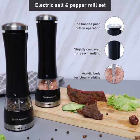 Buckingham Electric Salt and Pepper Grinder Set Soft-Touch Push Button