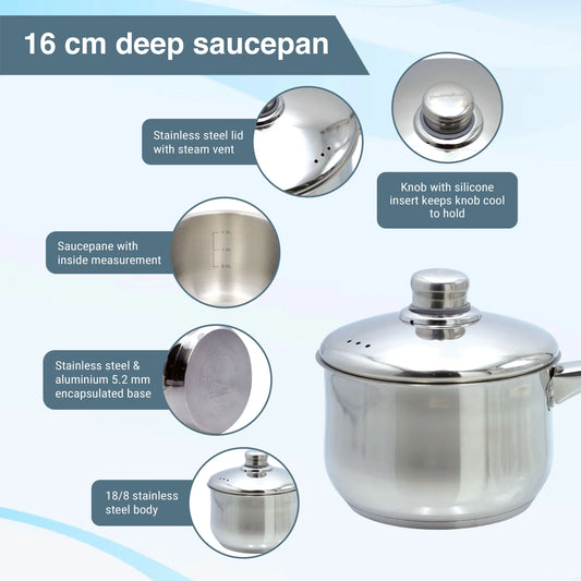 Buckingham 3 Piece Deep Stainless Steel Saucepan Set with Lid