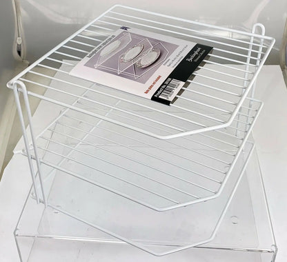 Buckingham 3 Tier Corner Plate Kitchen Cupboard Organiser is a durable, stylish, and space-saving solution for neatly arranging plates and other kitchen items. Designed to fit perfectly into cupboard corners, it maximizes storage while keeping your kitchen tidy. Made from sturdy wire with a sleek white plastic coating, it offers both strength and modern appeal. With its pre-assembled design and generous three-tier capacity, this organiser is ready to use and ideal for maintaining an efficient and elegant kitchen setup.