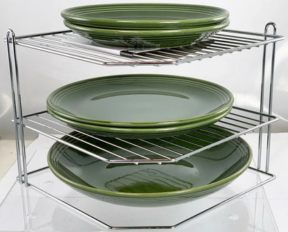 Space-Saving Corner Design: Fits neatly into cupboard corners, helping you organize plates efficiently while maximizing storage space.