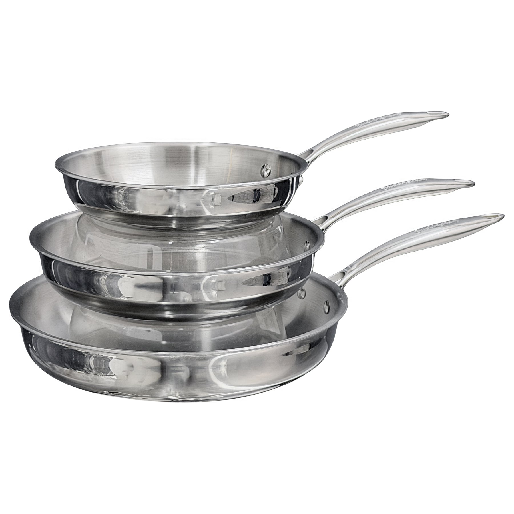 Buckingham Elite Tri-Ply 18/8 Stainless Steel Frying Pan set of 3, Uncoated.