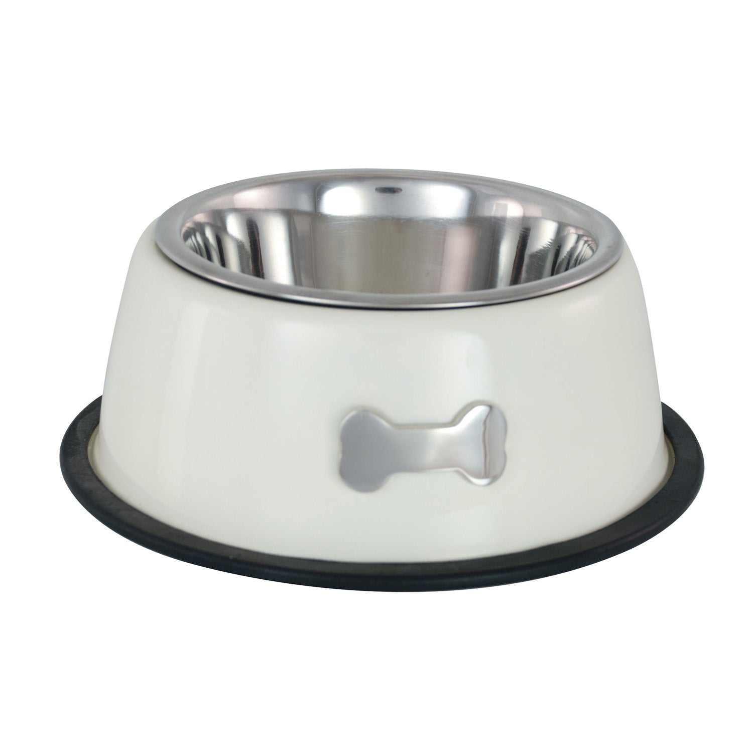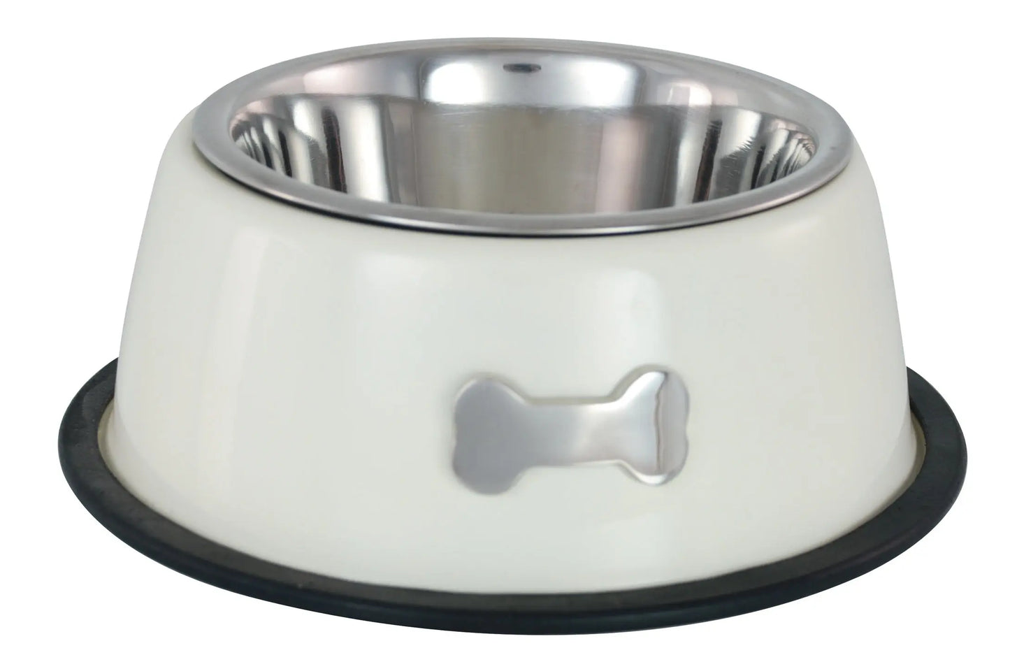 The Stylish Buckingham Bistro is an elegant feeding solution designed for your pampered pet. Crafted from durable powder colour-coated steel, the base features a charming solid bone motif and a non-slip rubber underside to keep the bowl securely in place during meals. This refined set includes one 0.5-litre removable, highly polished stainless steel bowl for easy filling and cleaning.