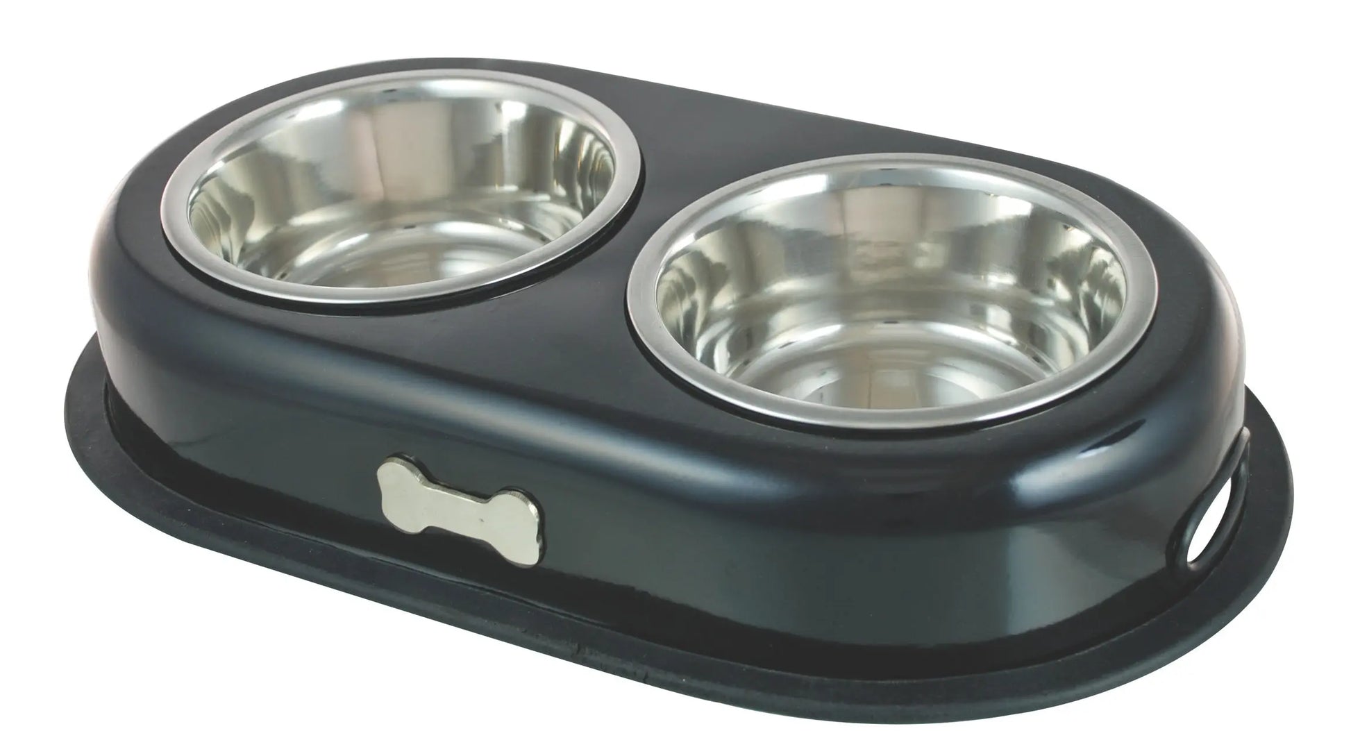 The Stylish Buckingham Bistro is an elegant and practical feeding set designed for your pampered pets. Crafted from powder colour-coated steel, the sturdy base is accented with a solid bone motif and features a non-slip rubber underside to keep it secure during mealtime. This premium set includes two 0.5-litre removable, highly polished stainless steel bowls, making filling and cleaning simple and mess-free.
