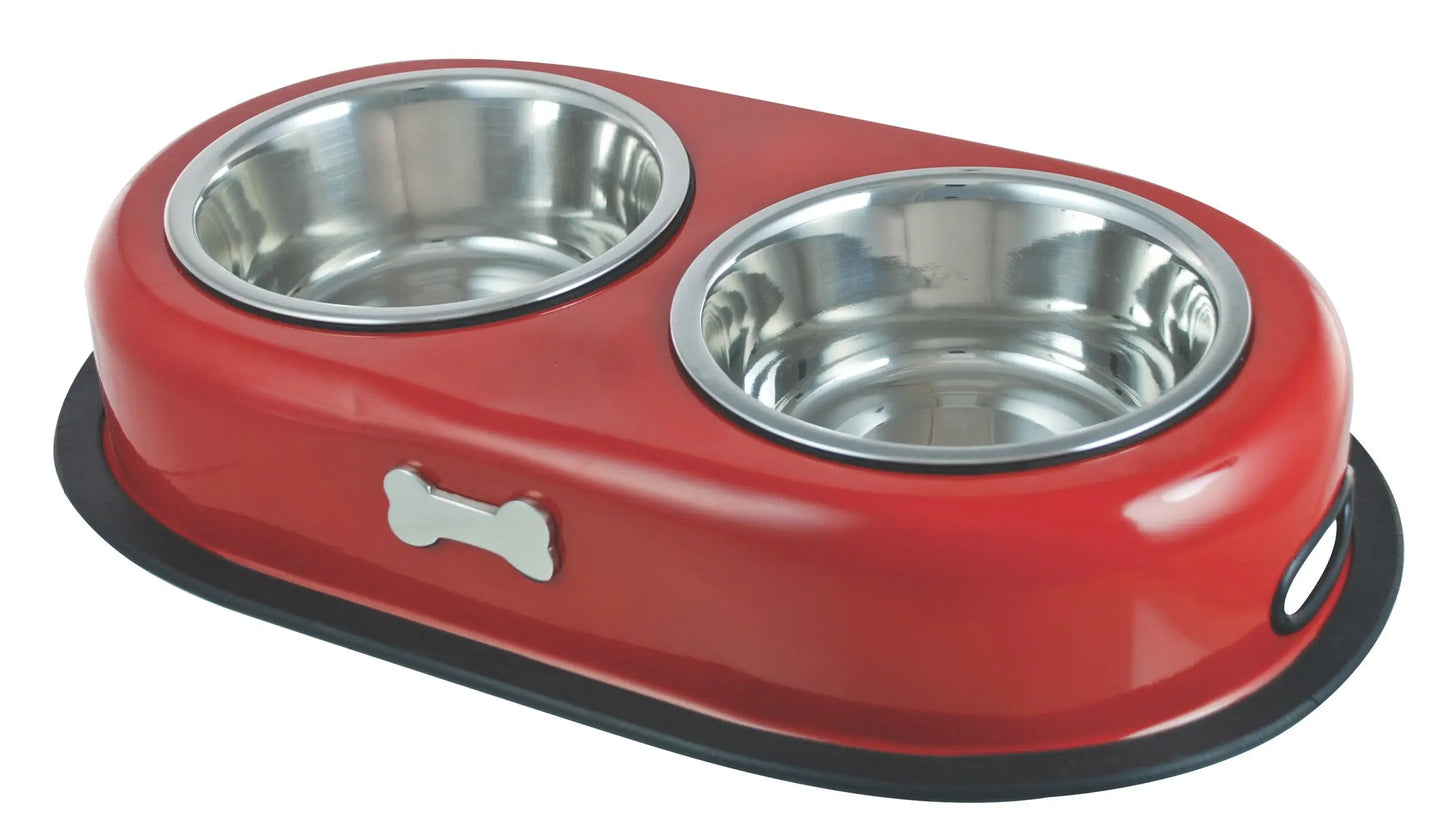 The Stylish Buckingham Bistro is a luxurious and practical dining set designed for your pampered pets. Made from durable powder colour-coated steel, the base features an attractive solid bone motif and a non-slip rubber bottom to keep it stable during meals. This elegant set includes two 0.5-litre removable, highly polished stainless steel bowls, perfect for easy filling and cleaning.