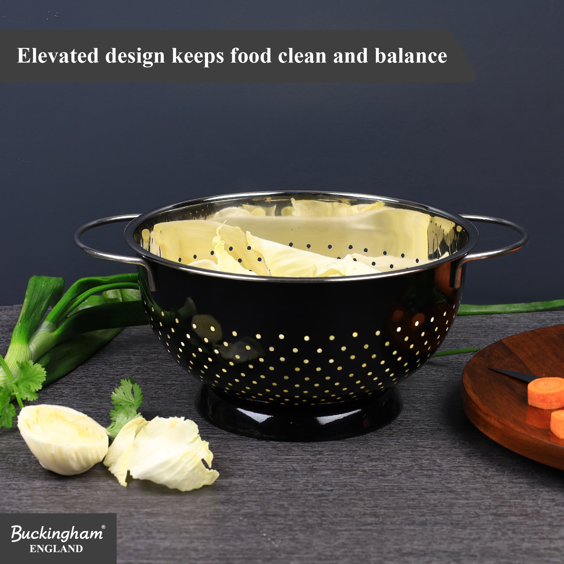 Buckingham Stainless Steel Hemisphere colander / strainer Black