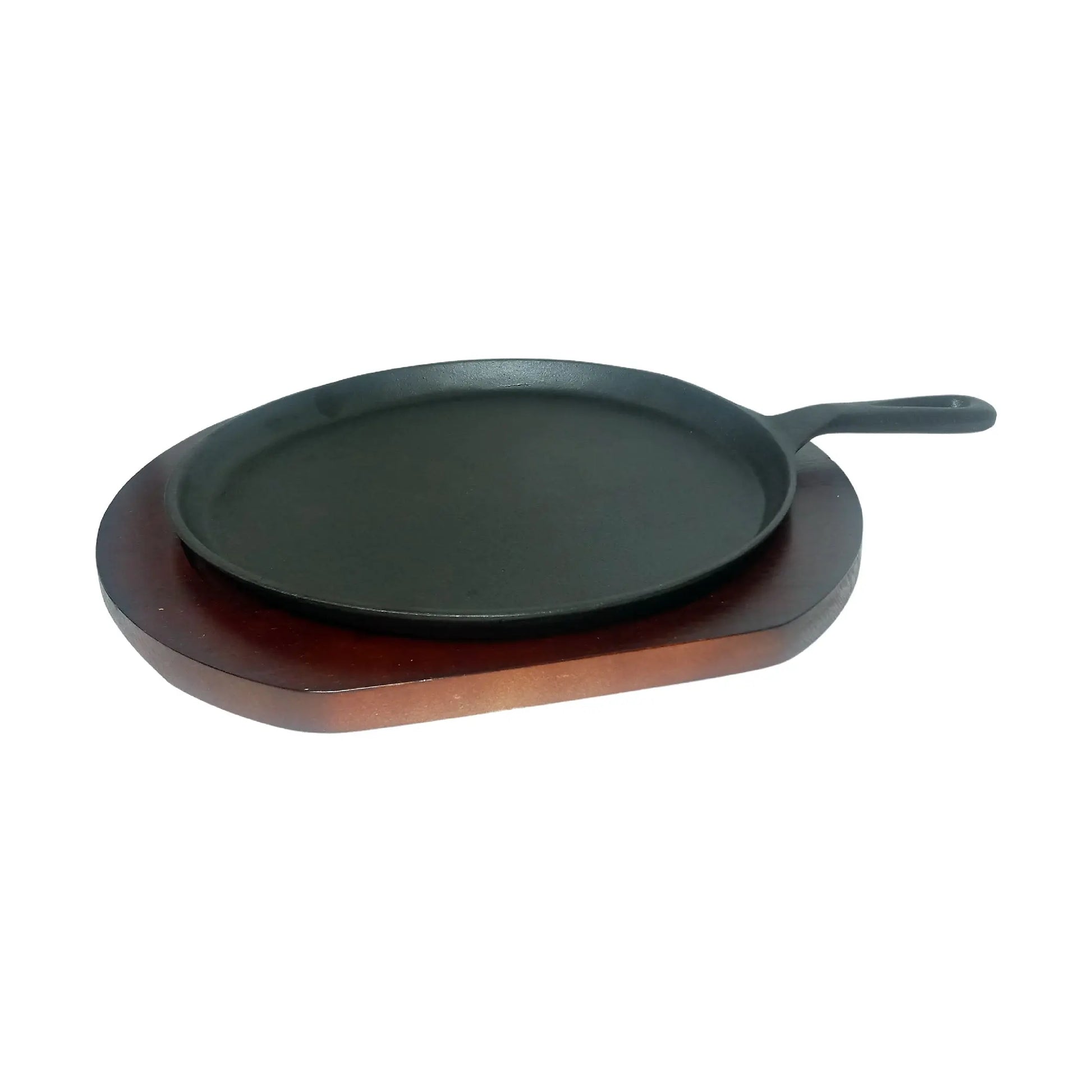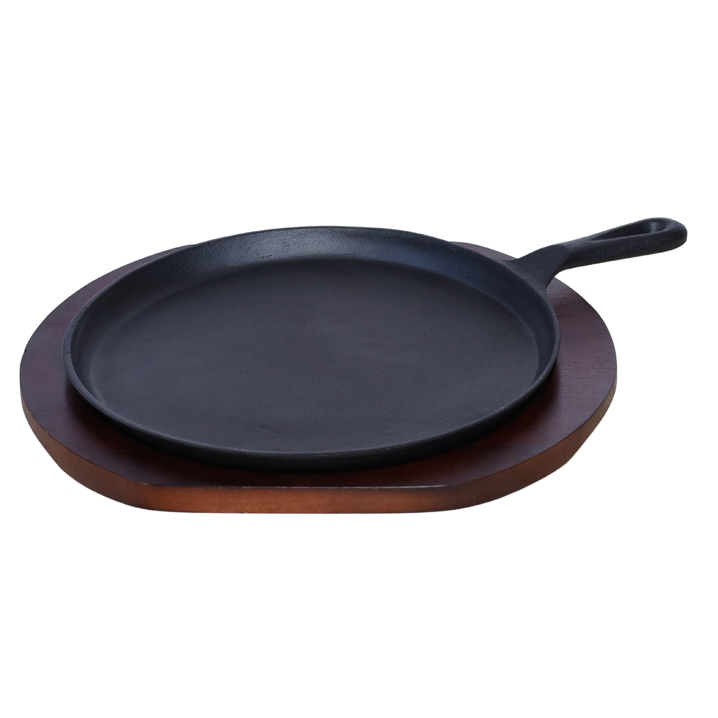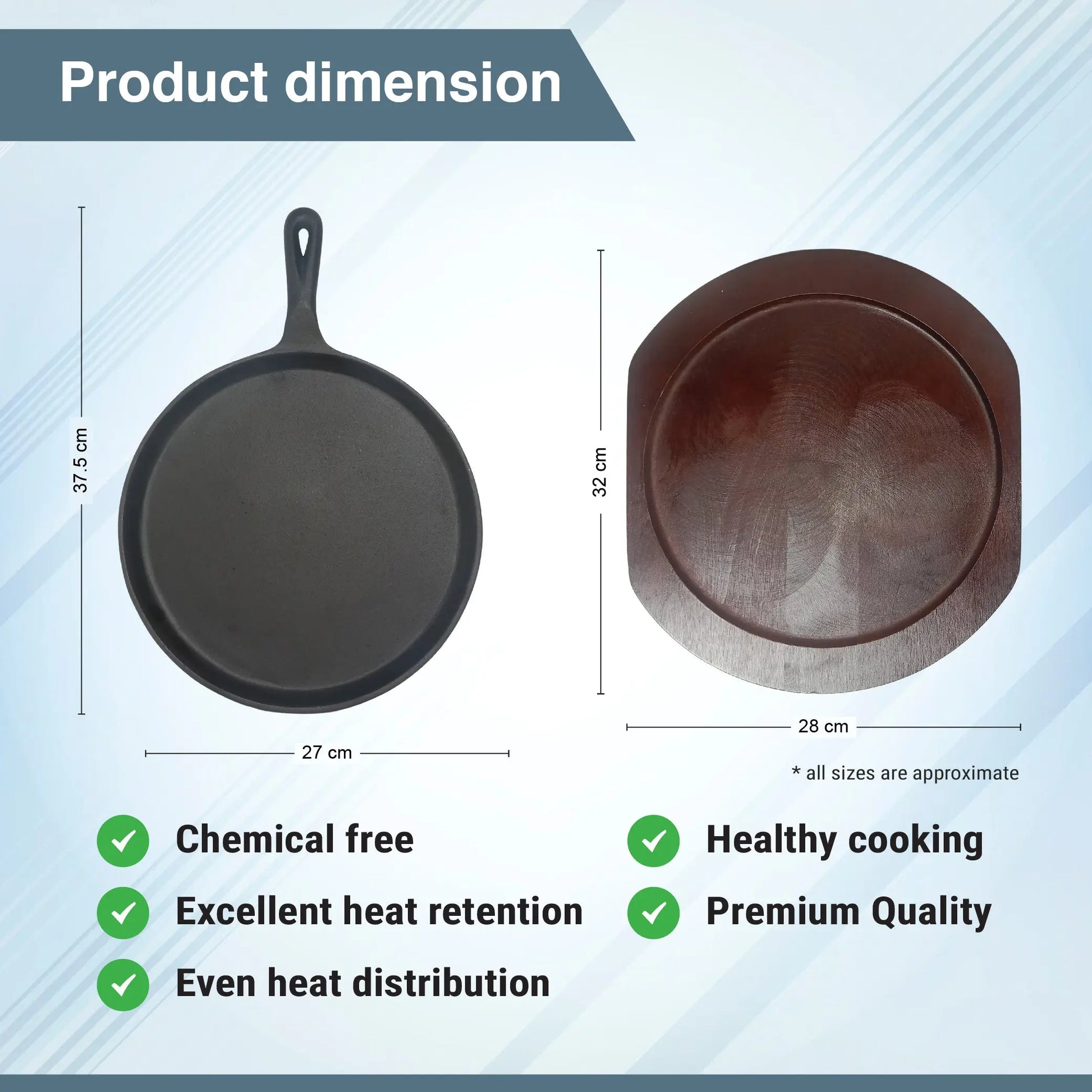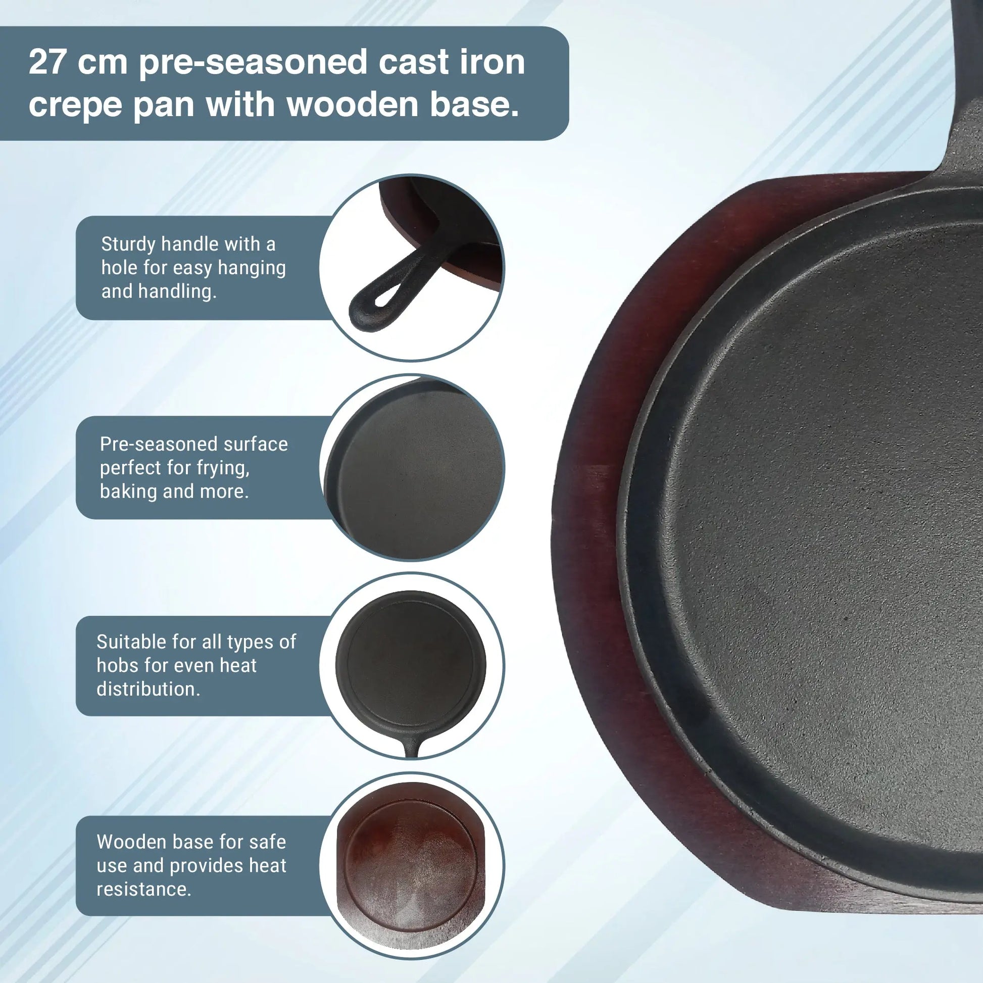 Buckingham Pre-Seasoned Cast Iron Crepe Pan With Wooden Base 27 cm