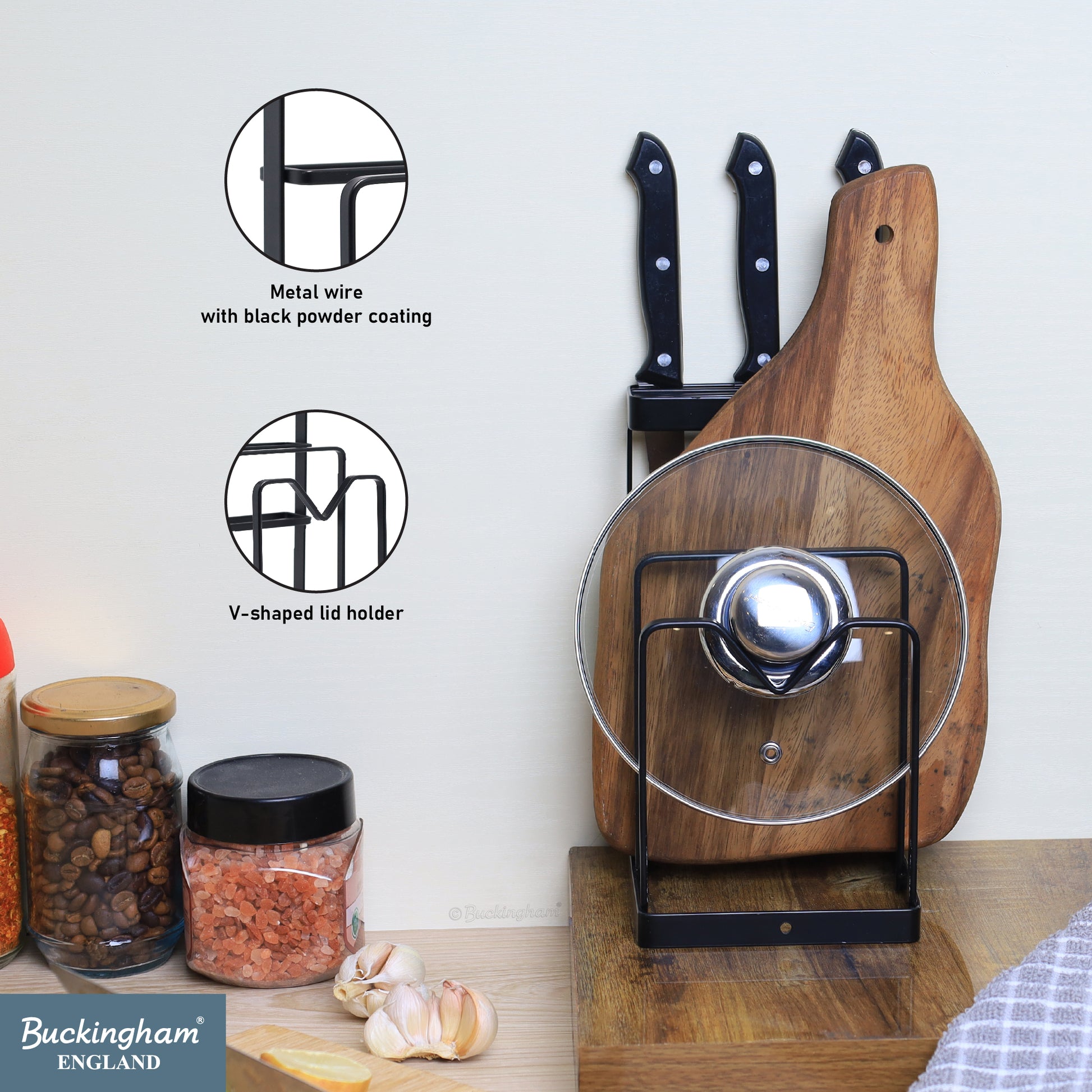 Multi-Functional Storage Rack: Perfect for organizing baking trays, chopping boards, pot lids, and knives, helping you keep your kitchen tidy and efficient.