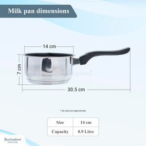 Buckingham 5-Piece Cookware Set delivers a perfect combination of performance, durability, and style for everyday cooking. Made from high-quality stainless steel, our set includes three saucepans (16 cm / 1.6 L, 18 cm / 2.3 L, 20 cm / 3.2 L), a 14 cm / 0.9 L milk pan, and a 24 cm / 2.6 L sauté pan with a durable non-stick coating. Each piece features a 5.2 mm encapsulated aluminum stainless steel base that ensures even heat distribution and efficient cooking. Our sturdy, heat-resistant bakelite handles offer a comfortable and secure grip. Compatible with all cooktops including induction and dishwasher safe, our versatile set is built to handle everything from daily meals to special occasions with ease and reliability.
