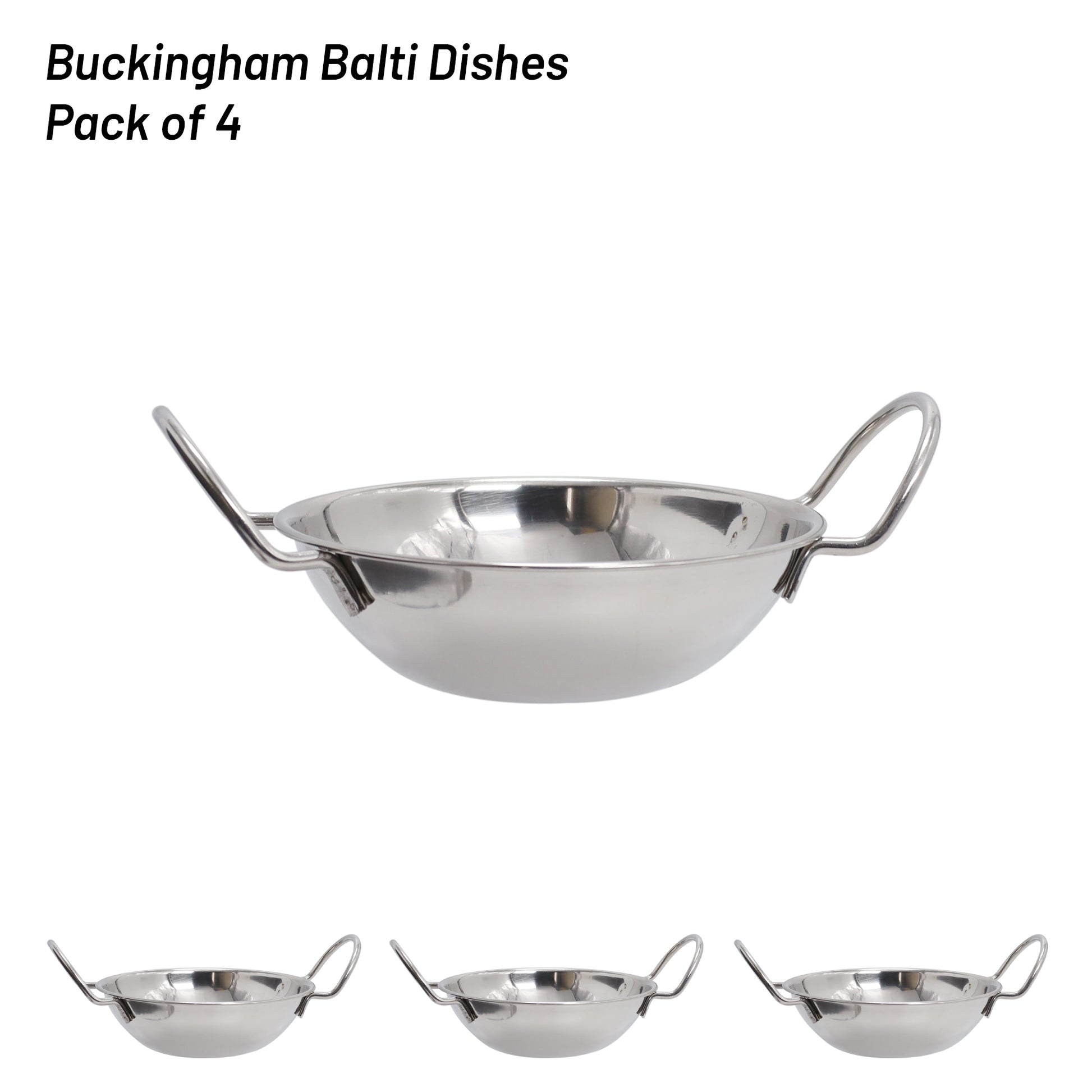 Buckingham Pack of 4 Stainless Steel Balti Dishes 17 cm