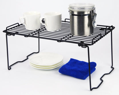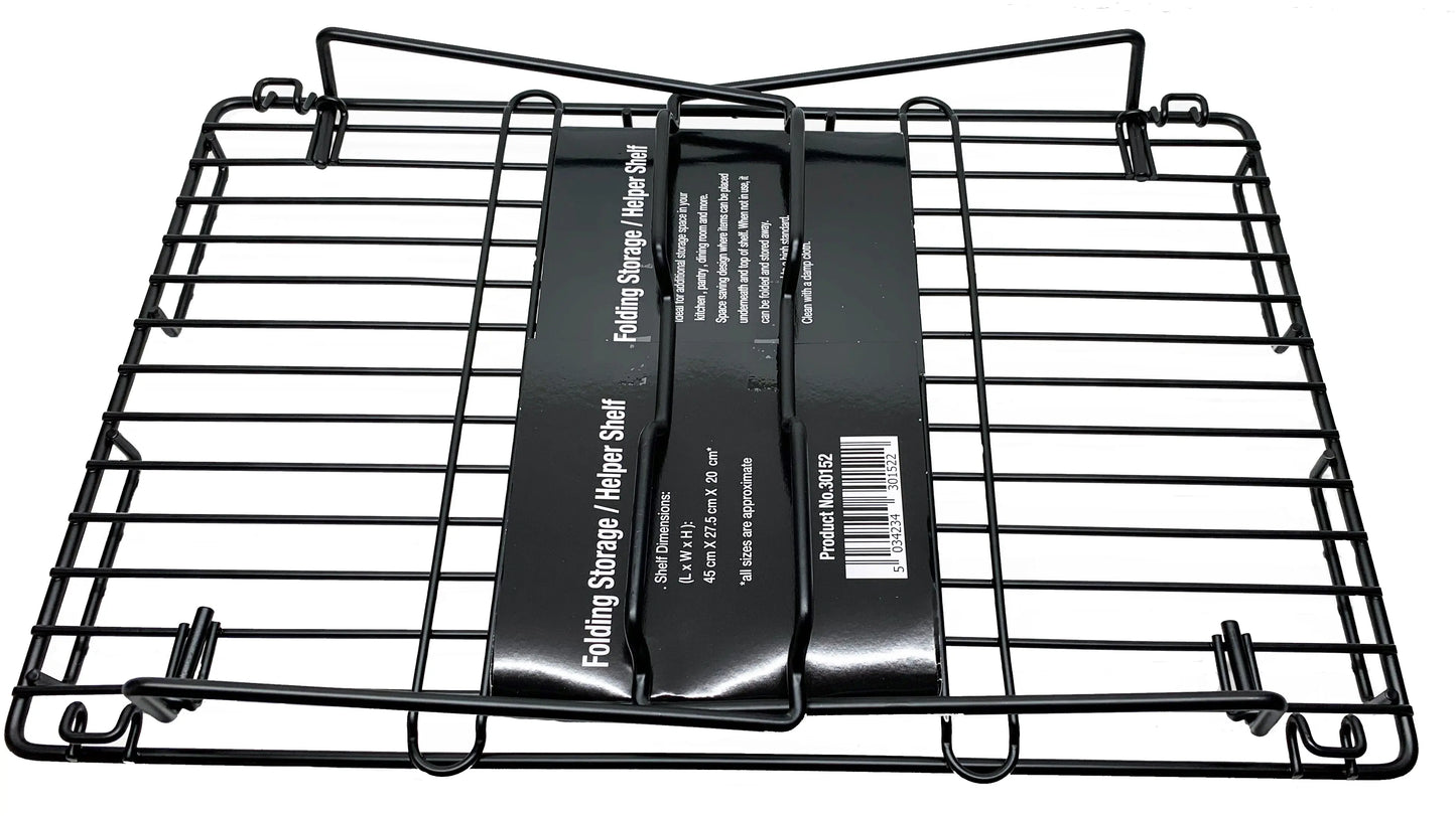 Buckingham cabinet folding helper shelf black combines durability, style and convenience to elevate your home organization. Built from thick-gauge iron wire with a sleek black powder-coated finish, it’s designed to withstand daily use while maintaining a modern, elegant look. Our foldable design allows easy storage when not in use, making it ideal for compact kitchens or limited spaces. With dimensions of approximately 45 × 27.5 × 20 cm, our helper shelf offers generous storage capacity for kitchenware, pantry supplies or other essentials. A practical and stylish solution, helps to maximize space and keep your cabinets, countertops or pantries tidy and efficient.