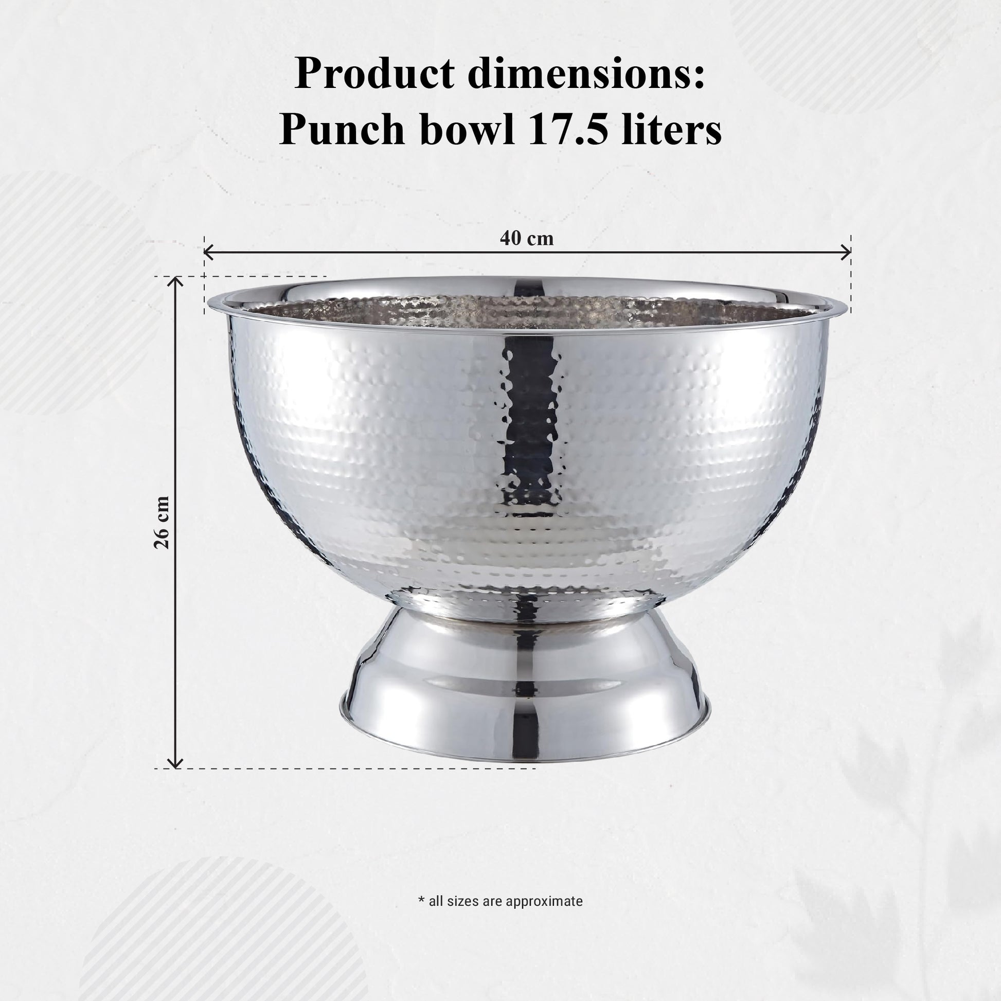 Premium Stainless Steel – Rust-resistant, durable, and features a mirror-polished, hammered finish for added sophistication.