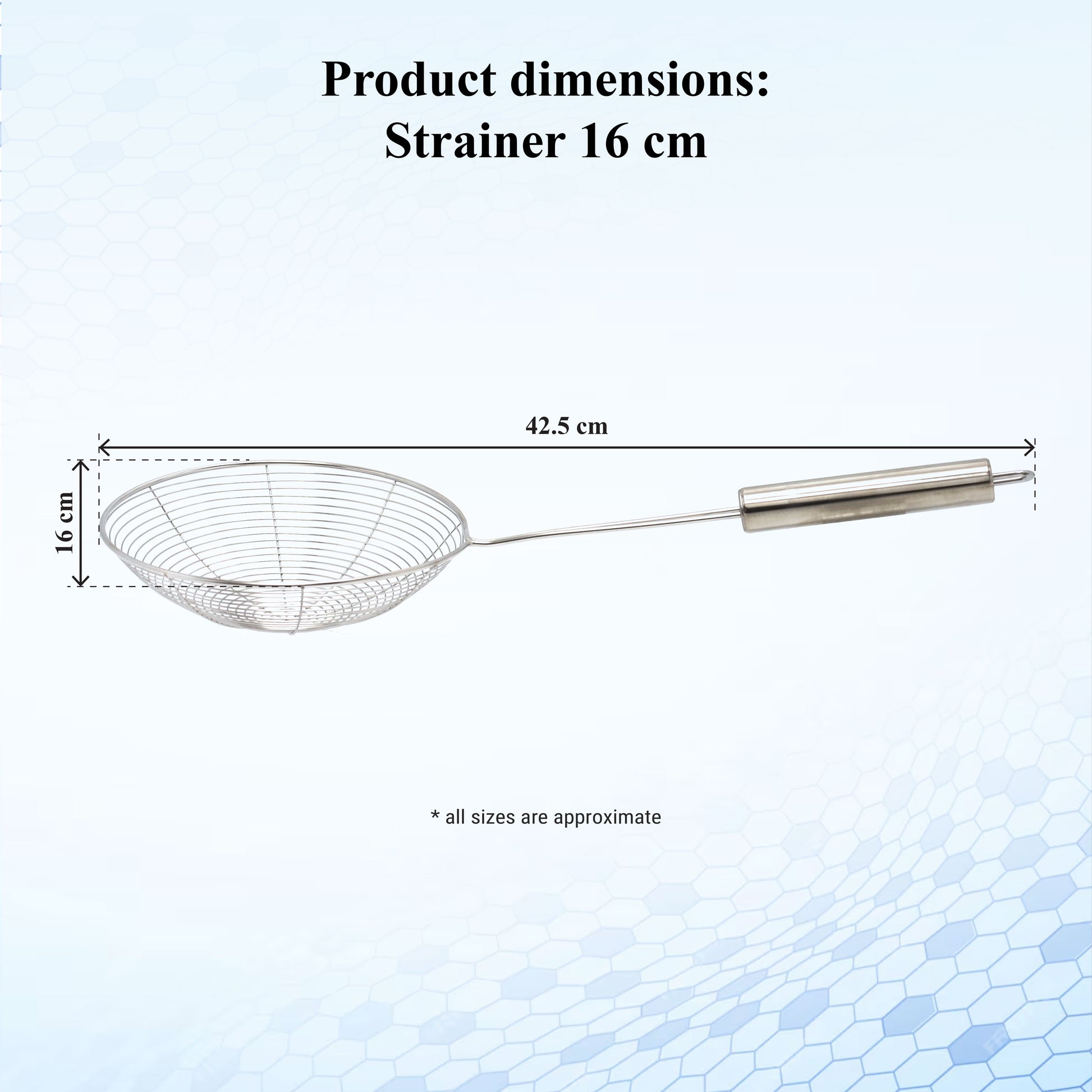 Four Practical Sizes: Available in 4 practical sizes, to suit frying, blanching or draining tasks.