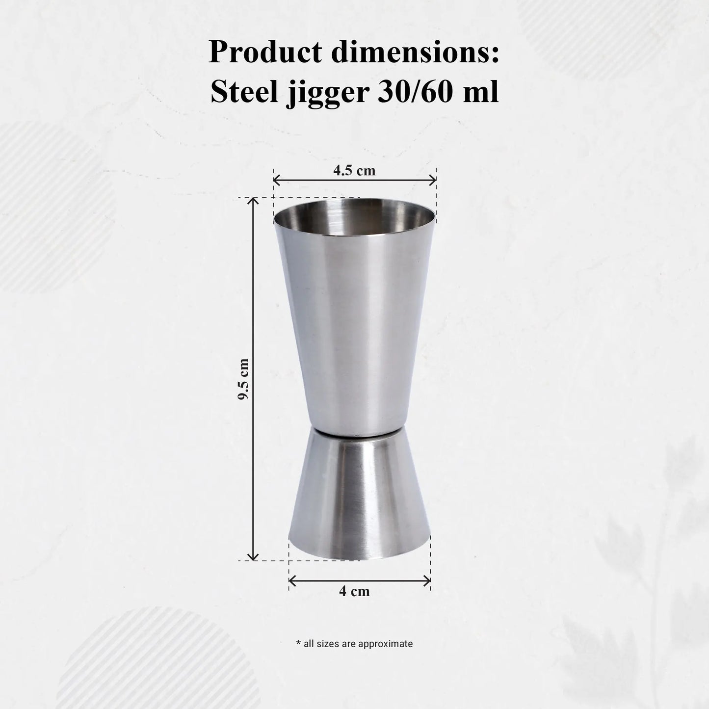 Dual Measurement Sizes. Offers two measurement sizes, 30 ml and 60 ml, suitable for precision in cocktail making and portion control.