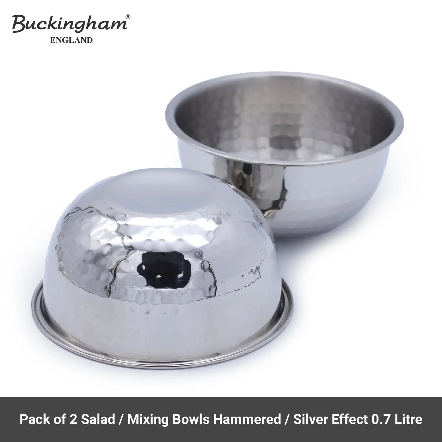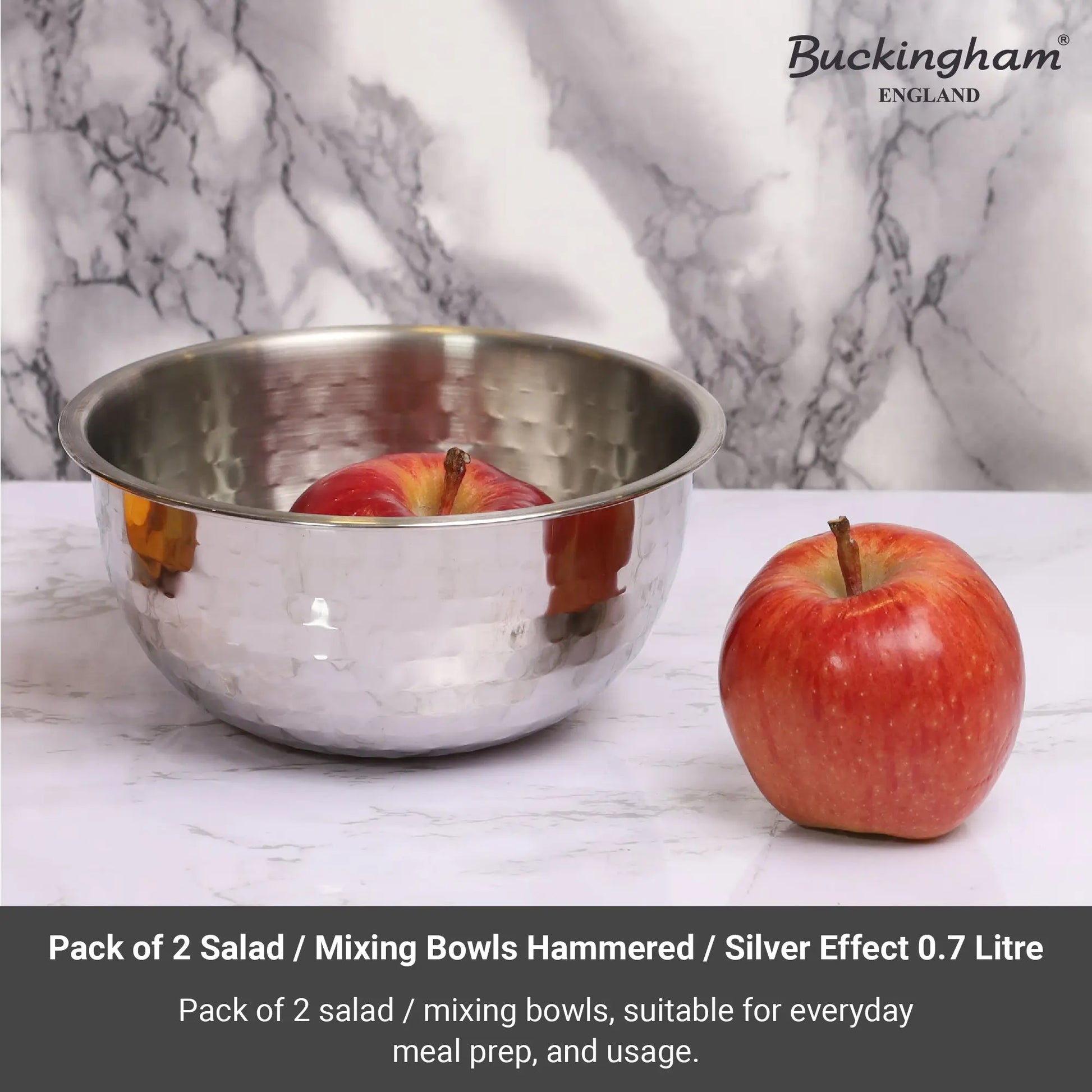 Buckingham Pack of 2 Salad Mixing Bowls Stainless Steel Bowls with Hammered Effect 0.7 L 14 cm