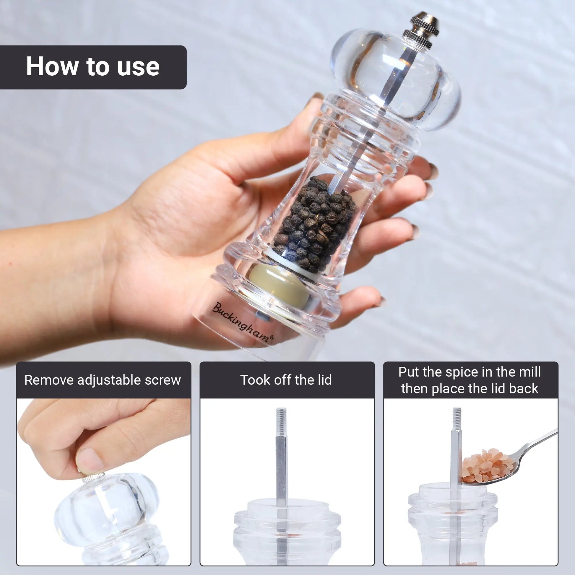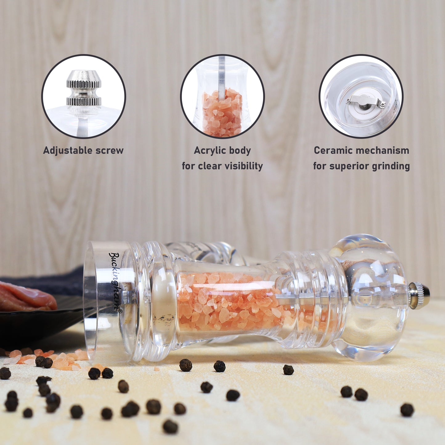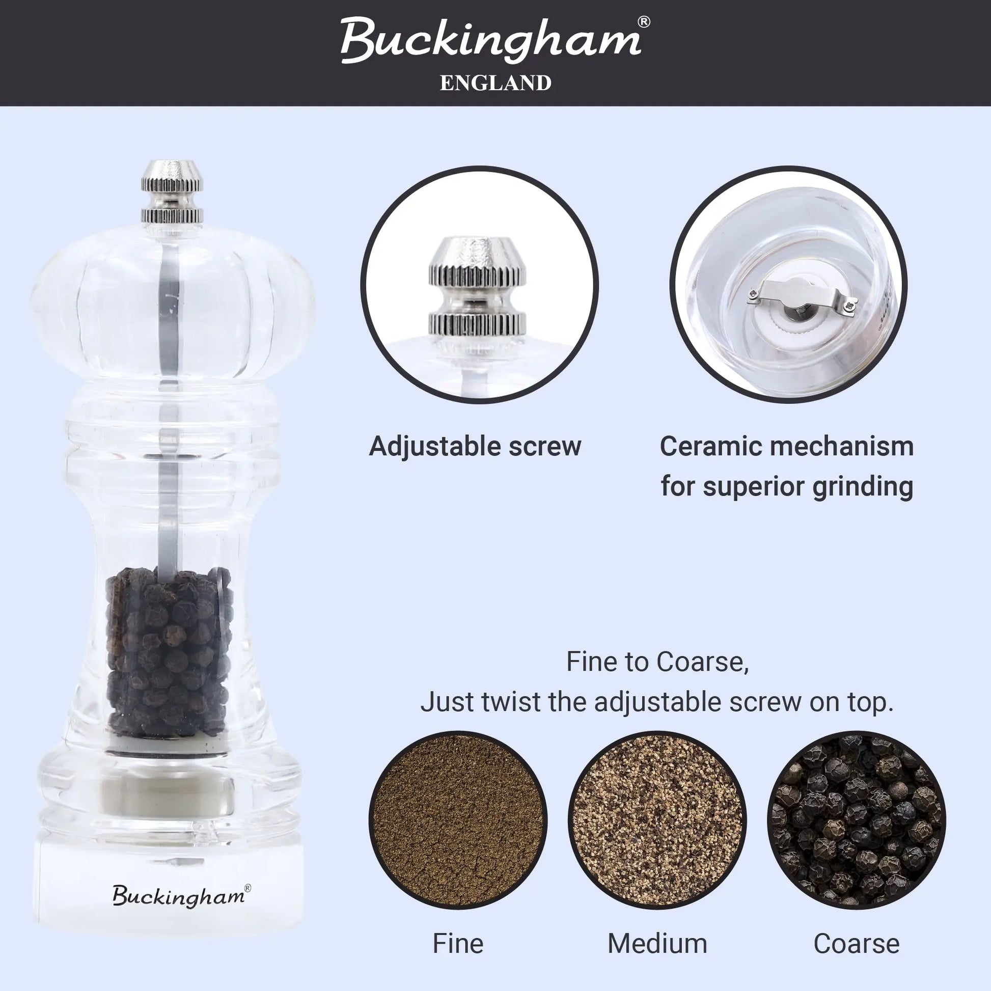 Buckingham Salt and Pepper Seasoning Mill Set Classic Acrylic Design