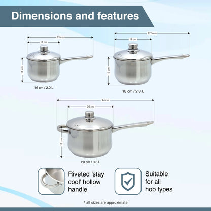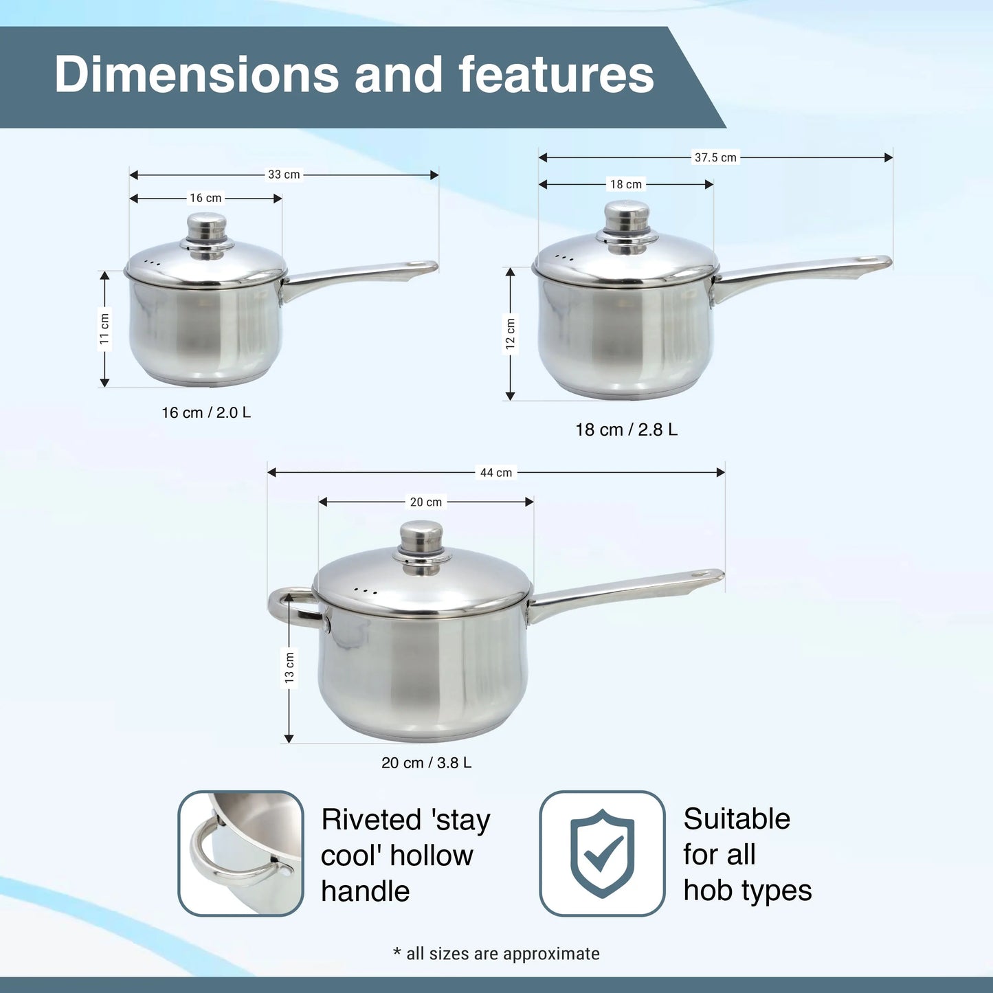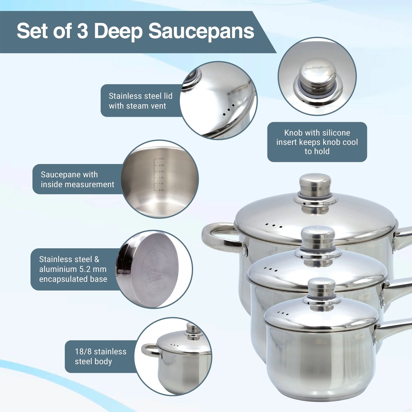 Buckingham 3 Piece Deep Stainless Steel Saucepan Set with Lid