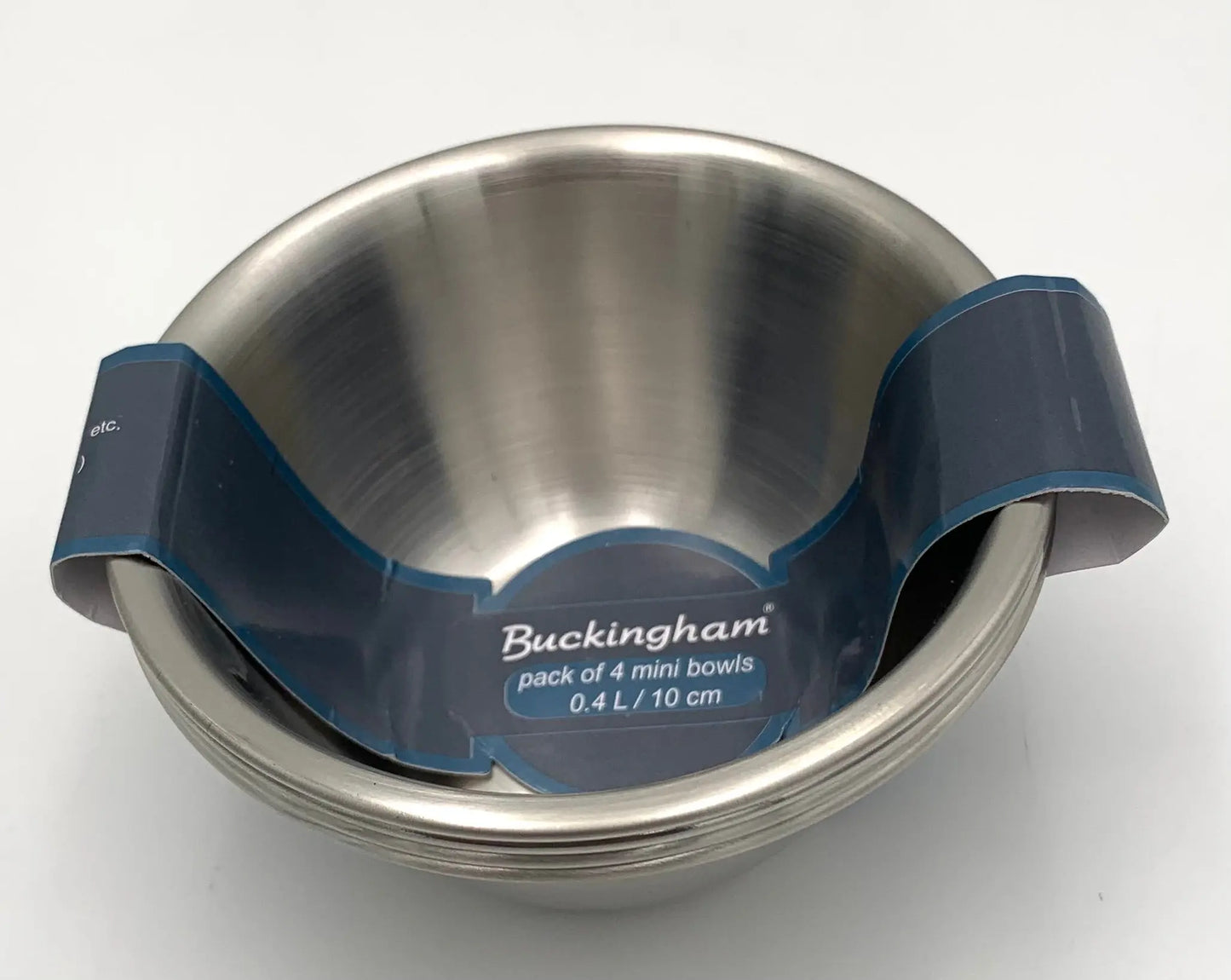 Buckingham Stainless Steel Set of 4 Mini Dessert Bowls (10 cm)